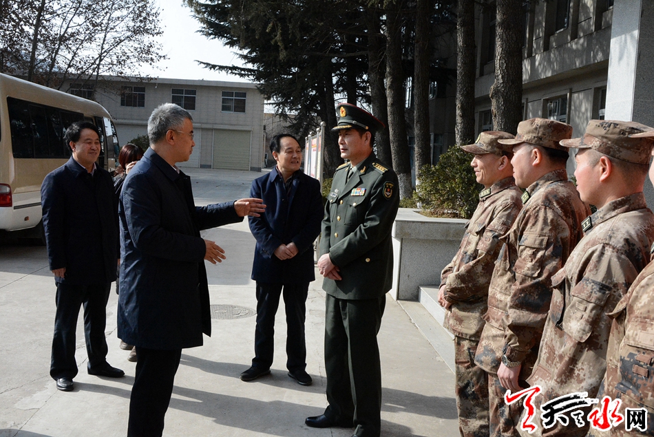 天天天水网讯【全媒体记者马哲】1月31日,市委常委、常务副市长赵四辈,市政协副主席郭明兴带领相关部门负责人,赴天水预备役旅、天水军分区、武警天水支队、省军区干休所,亲切看望慰问驻市部队,为部队官兵送去新春的问候和祝福,军地双方共迎新春,共话双拥共建。