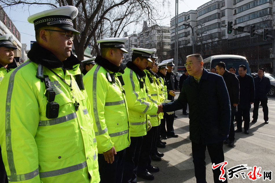 (王锐看望慰问正在节日保畅执勤的一线交警)