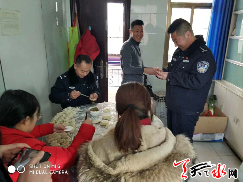 为了自己的“春晚”,当日下午,民警们就开始忙碌了起来,采购食材、和面、剁陷、布置会场,忙的不亦乐乎。晚上6点,晚会在东关街道大工委书记任保平、综治办主任郭雅晴以及东关派出所所长曹勇的讲话中拉开帷幕。伴随着喜庆的音乐和飘香的佳肴,民警和嘉宾们欢聚一堂,举杯同庆,相互致谢,相互祝福。