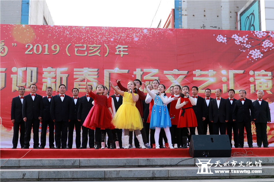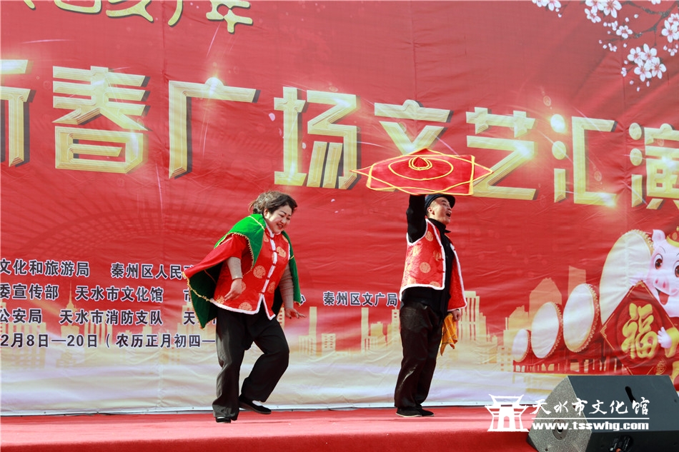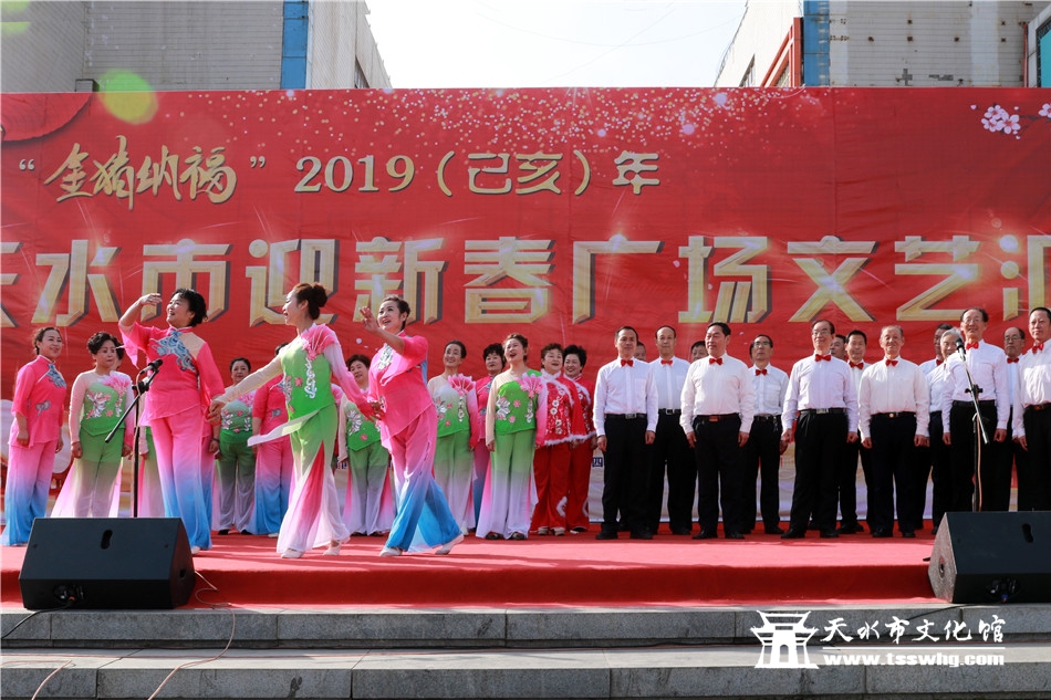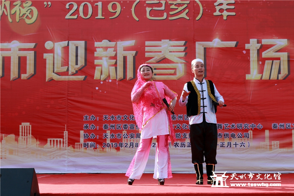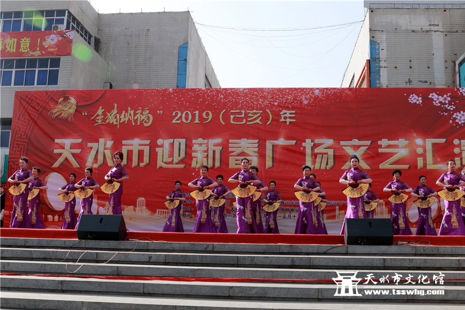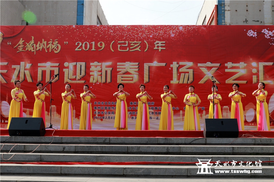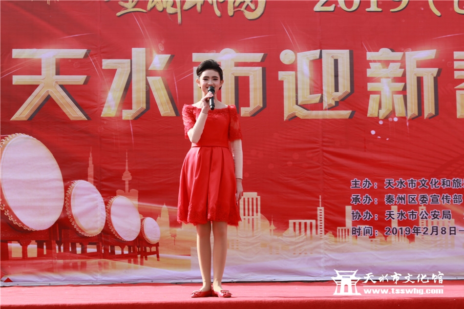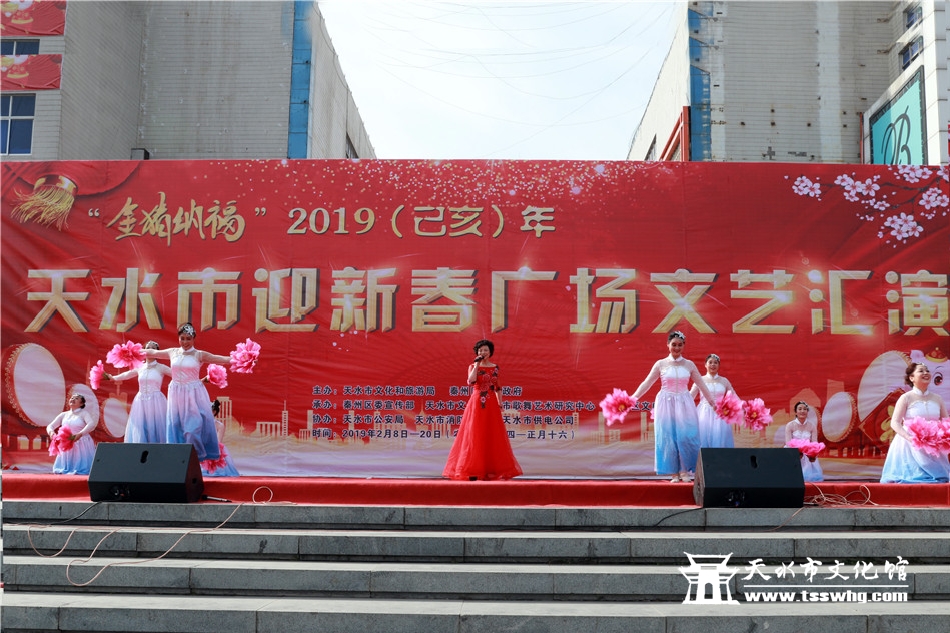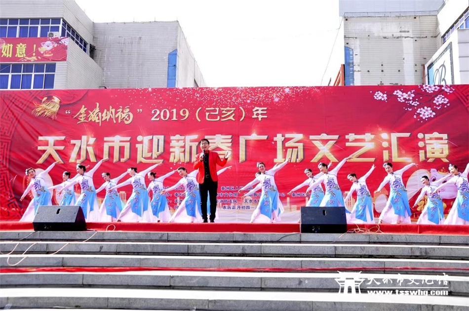 天天天水网讯2月8日(农历正月初四)14:00时,正当全市人民还沉浸在阖家欢聚、辞旧迎新的温馨时刻,由天水市文化和旅游局、秦州区人民政府主办、秦州区委宣传部、天水市文化馆、市歌舞艺术研究中心等承办的“金猪纳福”2019年(己亥)年天水市迎新春广场文艺汇演首场演出在龙城广场正式拉开序幕。