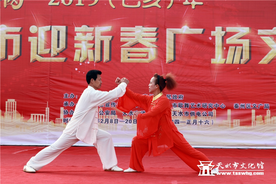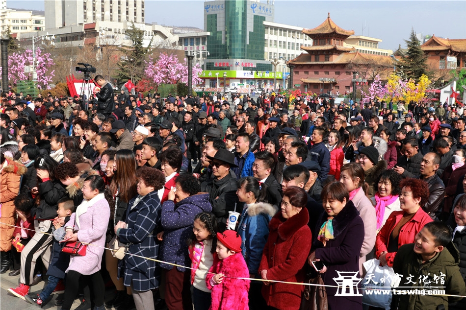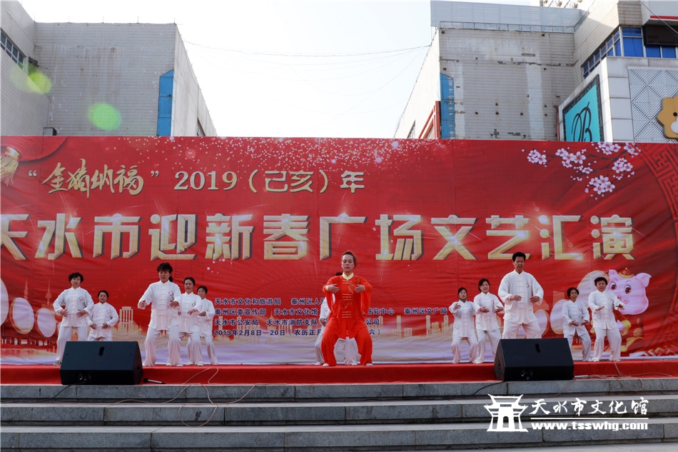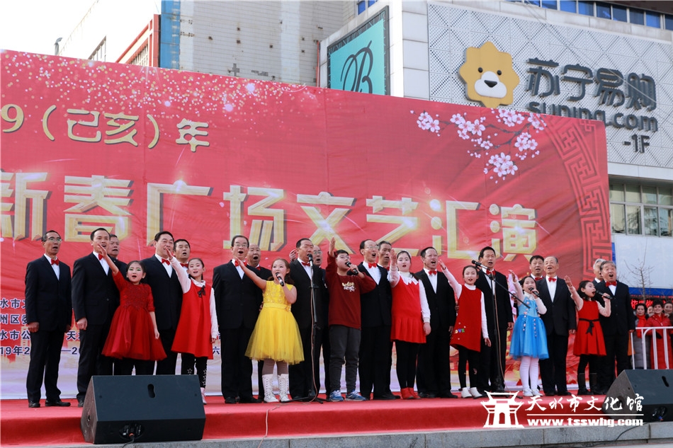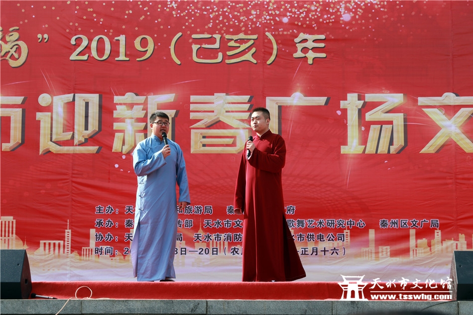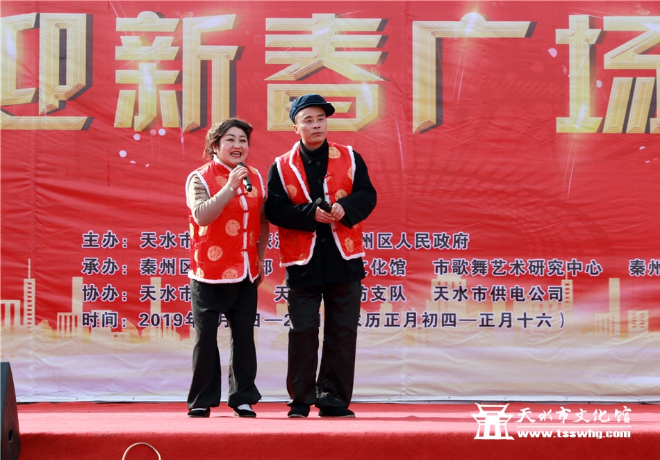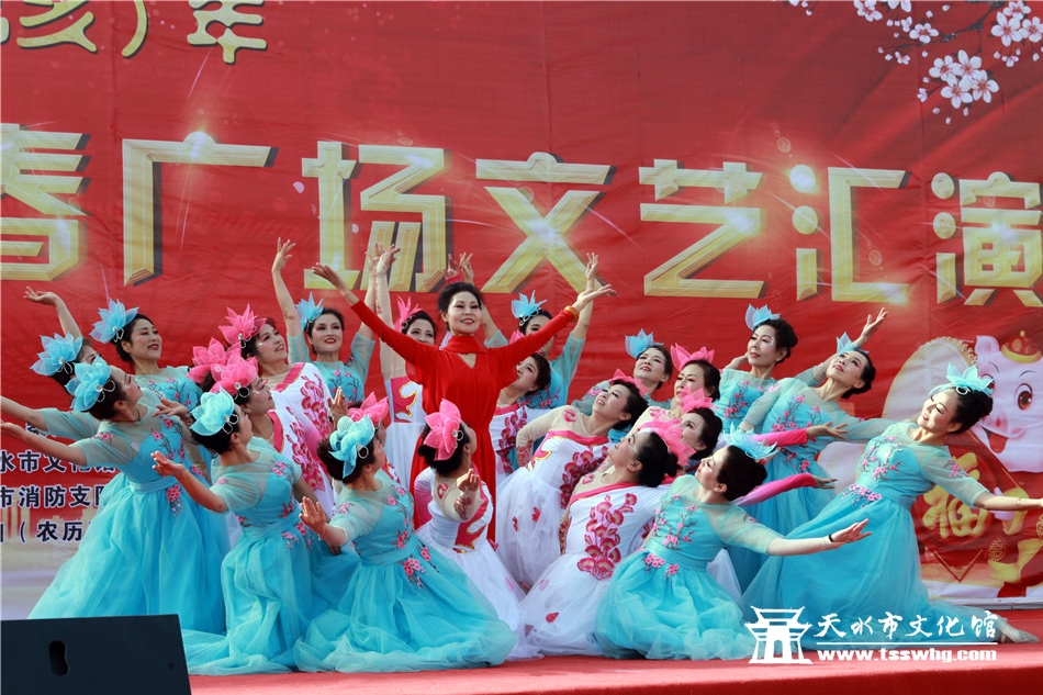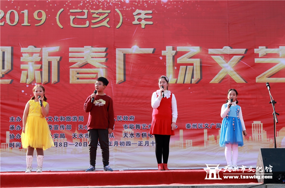 天天天水网讯2月8日(农历正月初四)14:00时,正当全市人民还沉浸在阖家欢聚、辞旧迎新的温馨时刻,由天水市文化和旅游局、秦州区人民政府主办、秦州区委宣传部、天水市文化馆、市歌舞艺术研究中心等承办的“金猪纳福”2019年(己亥)年天水市迎新春广场文艺汇演首场演出在龙城广场正式拉开序幕。