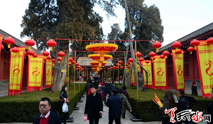 春节期间天水伏羲庙里人潮涌动,游客从四面八方赶来,在这里敬香祈福。