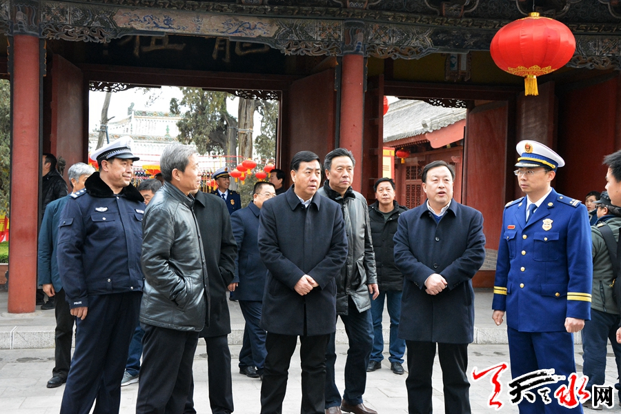 天天天水网讯(全媒体记者 李欣桐)2月11日下午,副市长逯克宗带领市文化和旅游局、市公安局、市安监局、市食药监局、市交警支队、市消防支队、秦州区政府相关负责人就我市春节期间文化旅游活动安全工作进行督查。