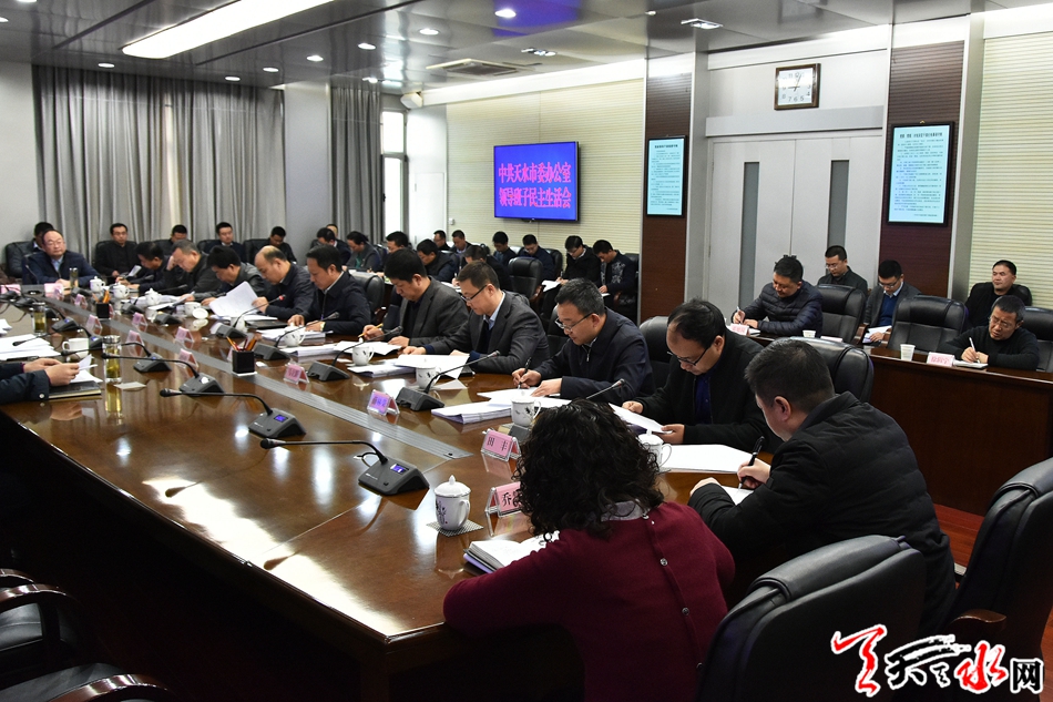 天天天水网讯【全媒体记者马放】2月12日,市人大常委会主任、市委秘书长蒋晓强参加指导市委办公室领导班子2018年度民主生活会。他强调,市委办公室一班人要紧跟时代发展脉搏,紧盯市委中心工作,紧贴人民群众需求,团结协作,锐意进取,不断在履行新时代党办职责任务中展现新作为、创造新业绩、实现新发展。