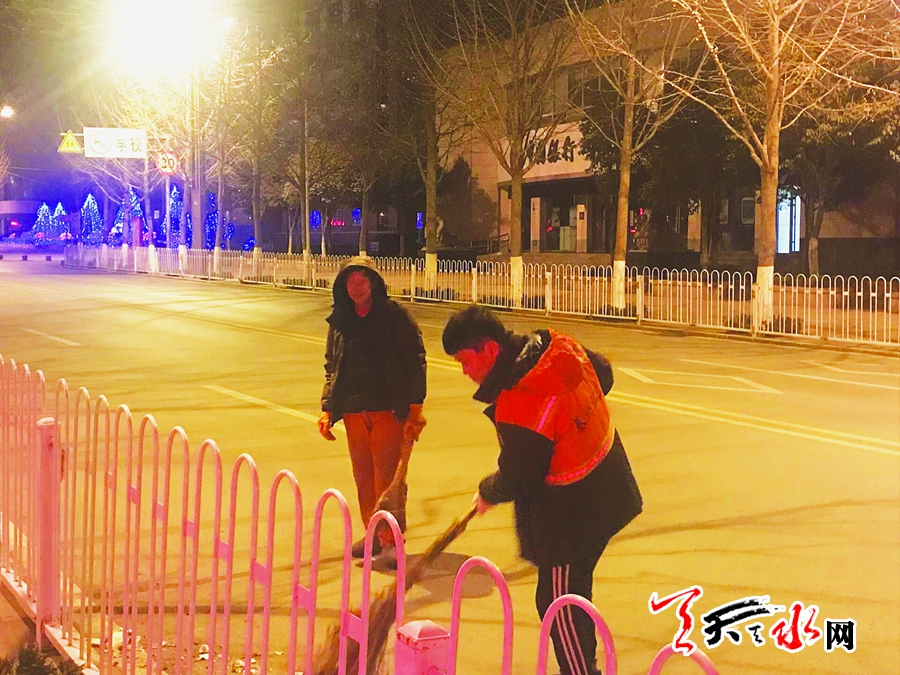 凌晨4点半的天水,你可曾见过?当整座城市还沉浸在甜蜜的美梦中时,已经有一群可爱的人儿,他们橘黄色的身影穿梭在大街小巷之中,他们是这座城市的早更鸟儿、启明星。他们用辛勤的劳动来换取城市的整洁干净,用汗水来迎接清晨和黎明,他们是这座城市里最美的一道风景线。他们就是有着“城市美容师”之称的环卫工人,身体力行地化妆着城市的脸庞。