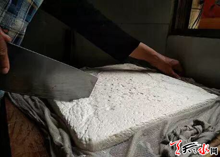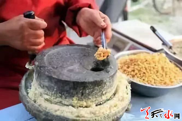 从我记事起,老家就流传着“北驮埠,花南铺,石佛镇的好豆腐”的说法。我在老天水县的西、南路工作时,每到一地,当得知我是石佛人时,朋友们都会不约而同地夸奖说,“石佛镇,好地方,石佛豆腐传四方。”即使在商品经济大发展,市场空前繁荣的今天,老先人脚踏实地创出的名牌,虽历经沧桑,仍青山不老,还在城乡市场发挥着名牌效应。就麦积而言,走进道北、桥南、渭滨市场,仿古一条街、分路口等一带市场,“石佛浆水豆腐”的招牌随处可见,摊位前买主蜂拥而至、比肩接踵。可见,家乡的豆腐早已是窗户眼里吹喇叭——鸣(名)声在外。“石佛浆水豆腐”好的原因关键有三:一是水质好,二是原浆点,三是工艺细。
