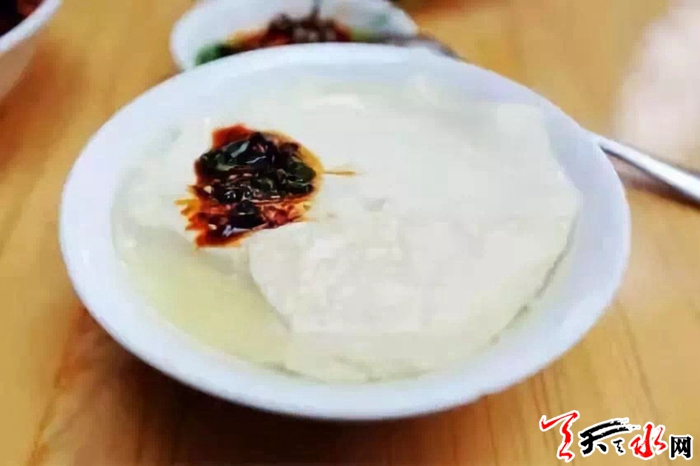 由于厨房天天被占用,我们家吃饭就没一个准星(正点)。经常是利用推磨黄豆的机会,简单做一顿。让人难以忘记的是,如果早饭碰上人家的白汤(即豆浆)刚煮开,锅错不开,做豆腐的邻居就主动热情地给我们舀一些白汤,让娃娃们先泡上馍解解饥。有时碰上豆腐花正上竹箩,就立即从竹箩里给我们取上两碗。那黏糊糊、热腾腾、白花花、水灵灵的头豆腐,泡上蜀黍面牙牙馍,虽然碗里一滴油没有,但撒上干辣椒面和盐,那原汁原味的醇香味,那营养丰富的农家小吃,让人回味无穷,终生难忘。时人有谚:“吃大肉,品鱼虾,不如一碗豆腐花;大米汤,三鲜汤,不如一碗纯白汤。”