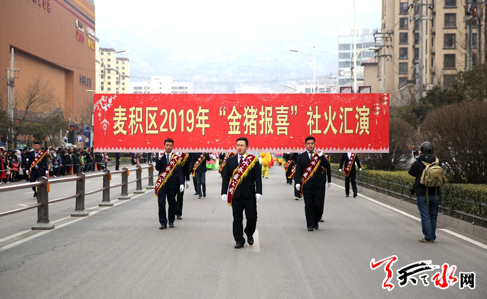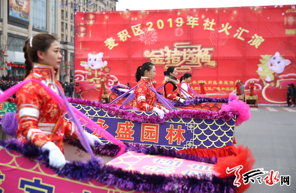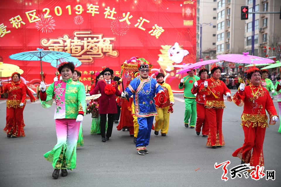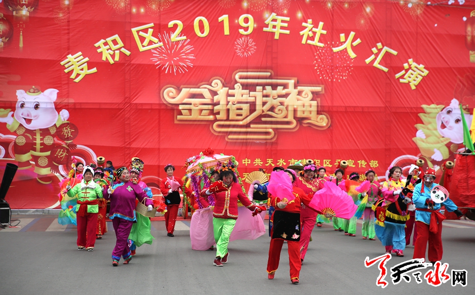 天天天水网讯【记者杨旭】倾城欢腾颂盛世,秧歌一曲闹春阳。2月17日(农历正月十三),麦积区2019年“喜迎新春·金猪报喜”社火汇演隆重举行。