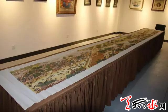 据了解,邓六妹在农闲和照顾孩子之余,历时八年完成这一幅令人观之震撼的十字绣长卷,创造了一个地方文化不可多得的艺术作品。画面中亭台楼阁、桥梁流水、人物车马,都逼真活现,整幅画卷绣得相当精美,是十字绣艺术当中难得的上乘之作,设色淡雅,不同一般的界面,长而不冗、繁而不乱、严密紧凑,如一气呵成,具有很高的文化艺术价值。