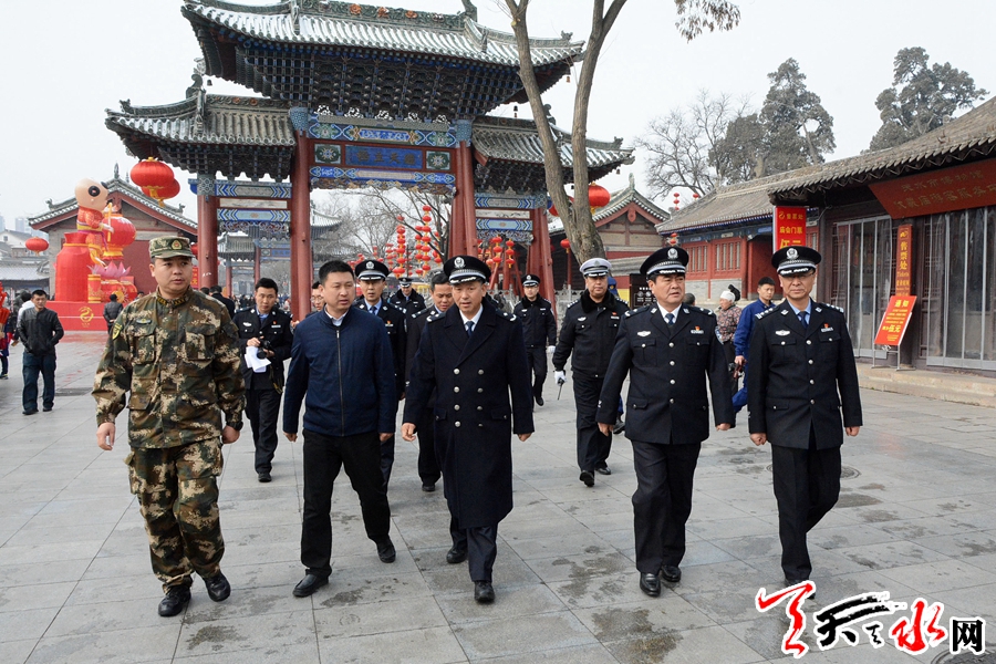 天天天水网讯【全媒体记者马哲】2月18日,副市长、市公安局局长马瑛带领市、区两级政府相关部门负责人检查伏羲庙春节文化活动安保等工作并召开现场办公会。马瑛强调,要坚持底线思维,扎实细致做好工作,为伏羲庙春节文化活动创造安全、祥和的环境。