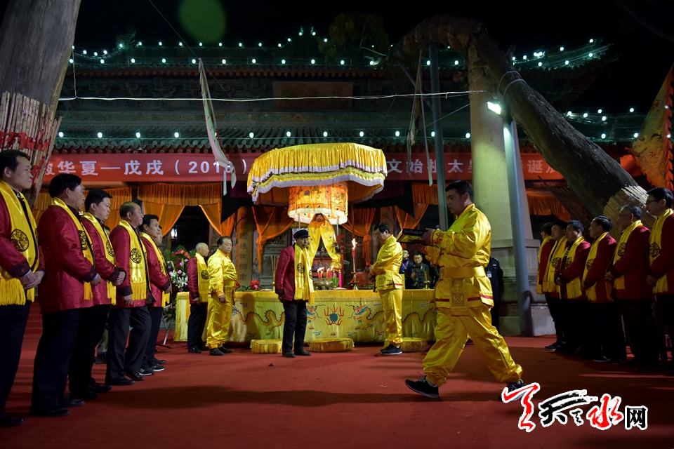 农历正月十三,飘飘洒洒的雪花从天空落下,在位于秦州区西关的伏羲城内,一支长约几百米的仪仗队浩浩荡荡地前行,白色的雪、黄色的仪仗队,与伏羲城内古色古香的建筑完美结合,既庄严肃穆,又隆重神圣。