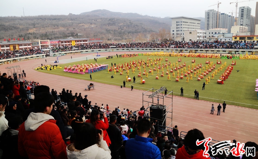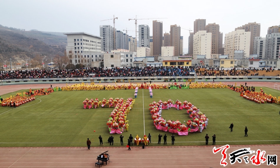 658人,70条龙表演龙腾盛世;272人,70对雄狮表演狮闹新春;164人,70面大鼓、70面钵表演鼓振雄风;140人,70条旱船表演行稳致远;70人合唱队表演歌唱祖国……正月初一,在响彻天地的锣鼓声中,在欢天喜地的热闹氛围里,清水的系列文化活动把过年的气氛推向了高潮。