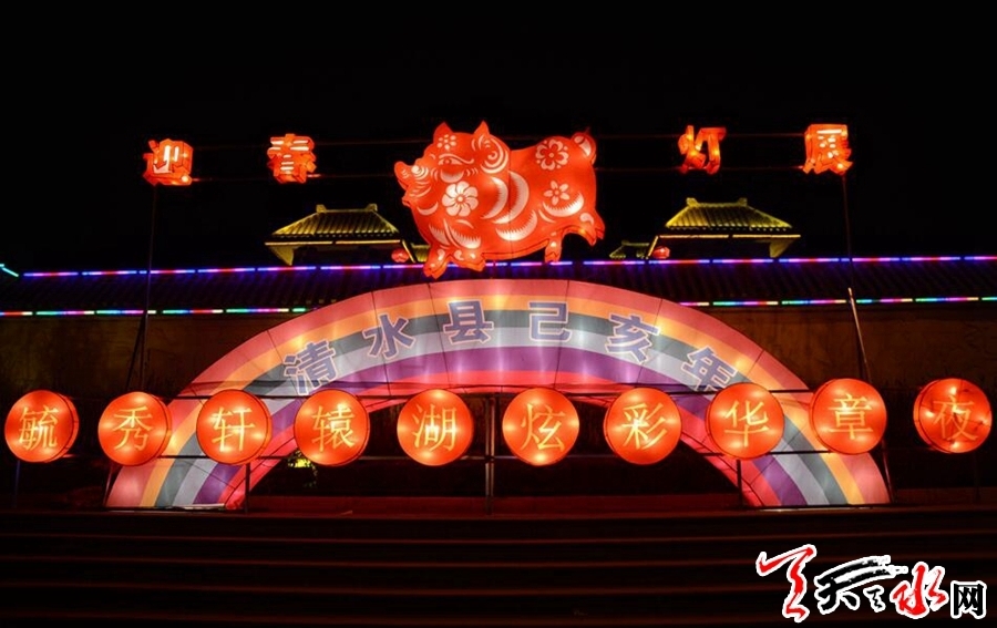 董星的夸赞之词并不言过其实,为纪念改革开放40周年,迎接建国70周年,清水县还举办了“毓秀轩辕湖•炫彩华章夜”春节灯展。灯展按照传统元素与现代元素结合,互动性与参与性结合,趣味性与观赏性结合的原则,共设锦绣新春、党建引领、扶贫攻坚、改革开放、轩辕文化等14个主题灯区。