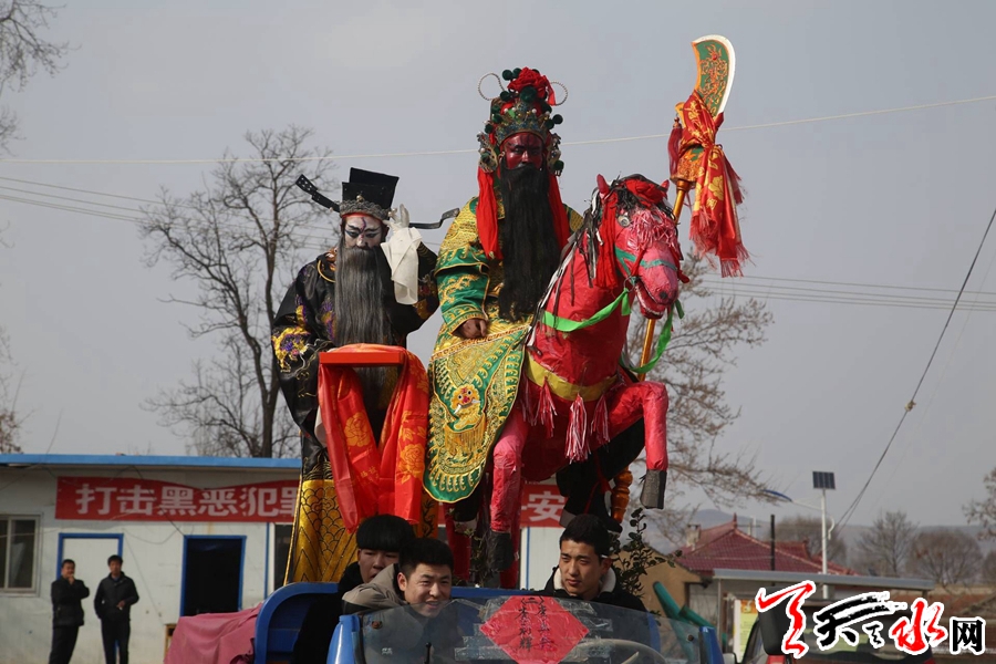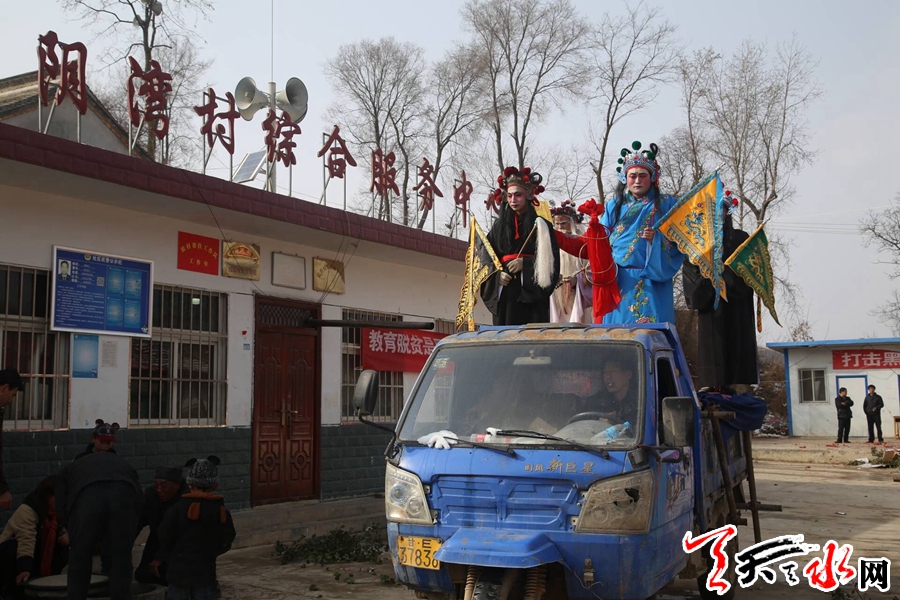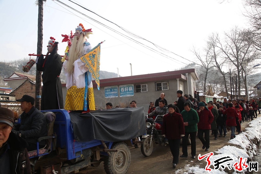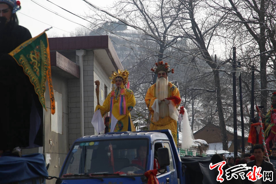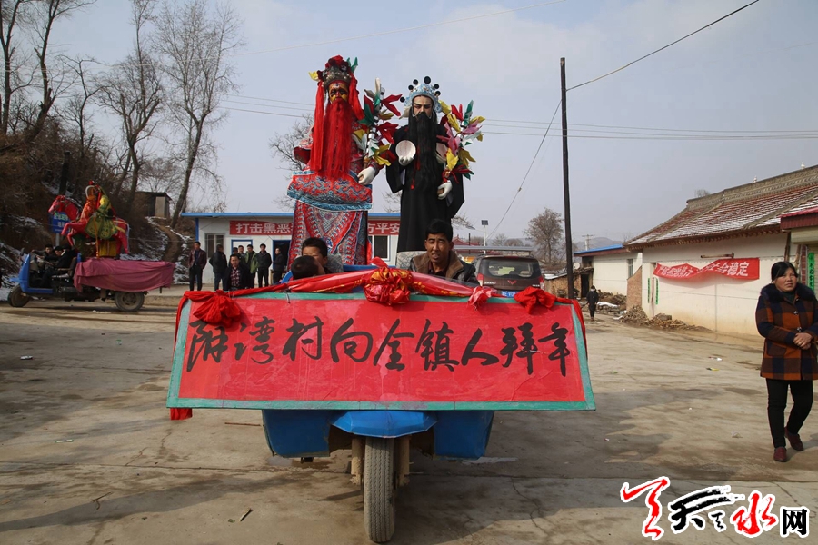 2月16日,春寒料峭,天空时不时地飘着雪花,记者来到秦州区大门镇阴湾村这个四周环山的美丽小村庄时,山上的积雪还没有融化,又落了一层新雪,给新春增添了一丝喜气。天气虽然很冷,但依旧抵挡不住村民的热情,大家齐聚集在村文化广场看社火表演。
