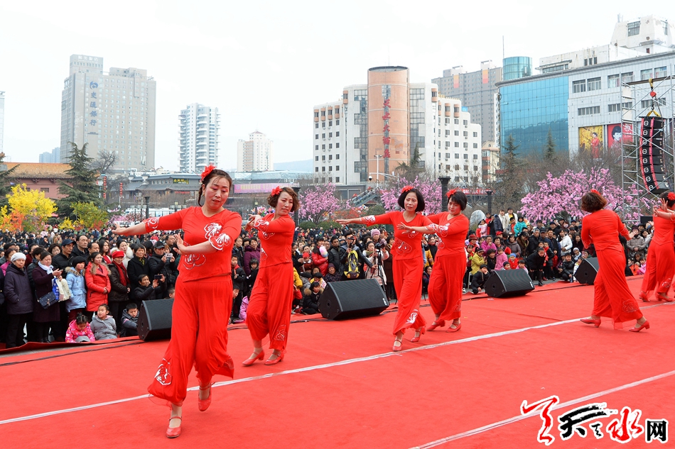 2月19日(正月十五),秦州区天水镇老年大学的学员在市龙城广场参加“我们的中国梦”——文化进万家2019年新春全区广场文艺展演。表演的非物质文化遗产原生态小曲为元宵节增添了一份浓浓的节日气氛。 全媒体记者 周文涛 摄