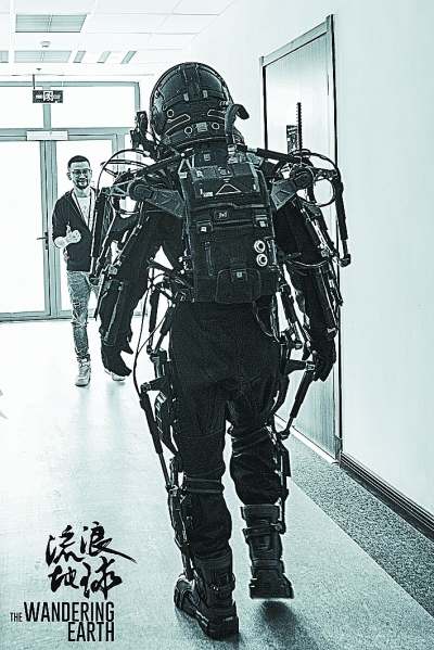 《流浪地球》中出现最多的服装是宇航服和外骨骼装甲,除了形象逼真的宇航服,外骨骼装甲邀请了好莱坞顶级特效公司WETA制作,但重量依旧难以控制。由于外骨骼太沉,动作无法伸展,演员的每次表演都是在挑战极限。于是,在影视产业园附属用房中,“龙门架”应运而生,这些架子负责将外骨骼挂起,分担重量。