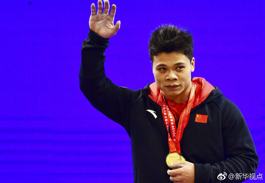 24日,在福州市举行的2019年举重世界杯赛暨东京奥运会资格赛男子73公斤级比赛中,中国选手韦胤廷以抓举162公斤、挺举189公斤、总成绩351公斤夺得该级别抓举、挺举和总成绩冠军。