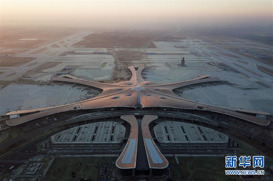 这是2018年12月29日拍摄的晨曦下的北京大兴国际机场(无人机拍摄)。新华社记者 鞠焕宗摄