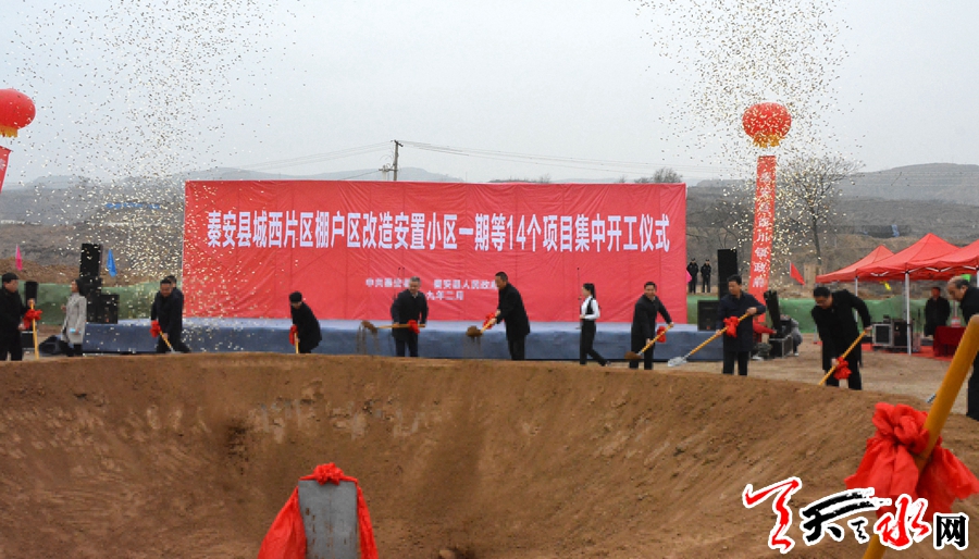 天天天水网讯(全媒体记者 李欣桐)2月28日,秦安县城西片区棚户区改造安置小区一期等14个项目集中开工,开工仪式在西川镇宋峡村举行。市委常委、常务副市长赵四辈出席开工仪式并为项目工程开工奠基。