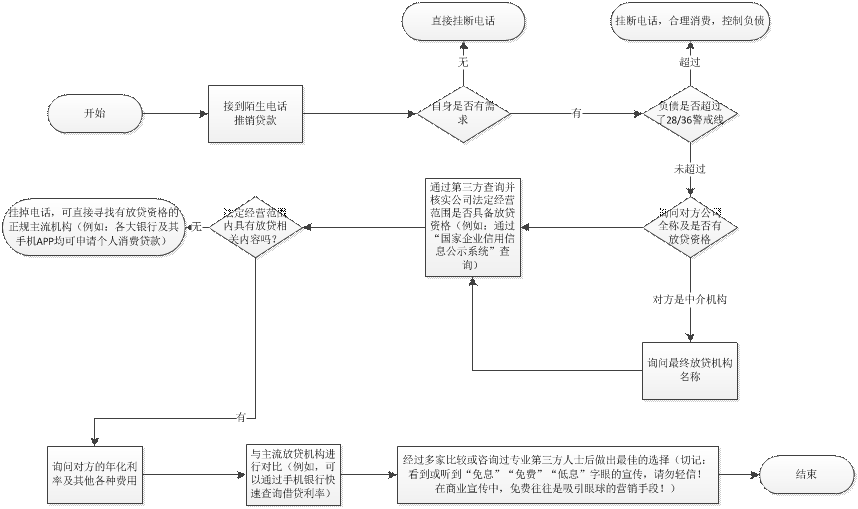 金融消费者在接到陌生推销电话可以参考如下的流程图来处理: