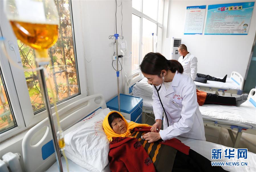 在山东省青岛市即墨区柳沟社区中心卫生室,医生为患者诊疗(2018年11月15日摄)。新华社发(梁孝鹏 摄)
