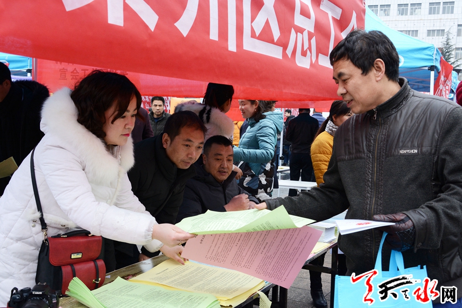 天天天水网讯【全媒体记者冯丽娟】3月2日,由市总工会、市司法局、市妇联主办的“天水市2019年就业创业服务月现场招聘会暨尊法守法、携手筑梦服务农民工公益法律服务农民工行动”在秦州区龙城广场举行。