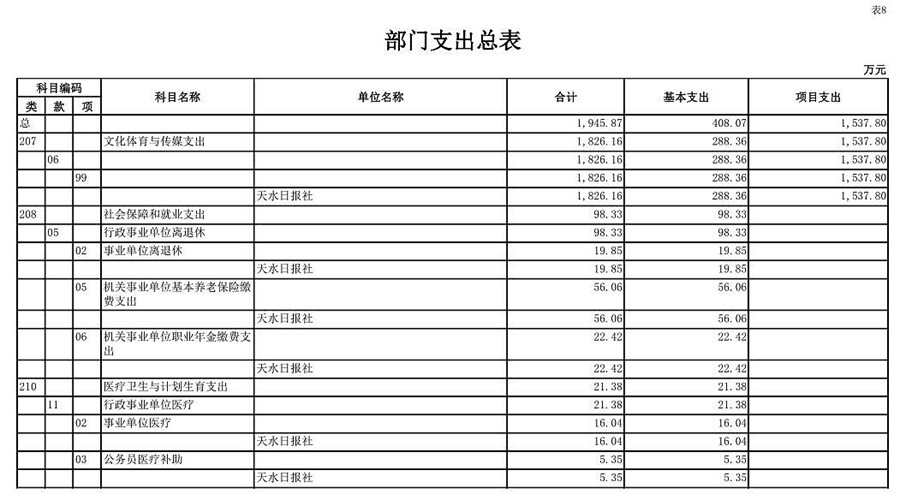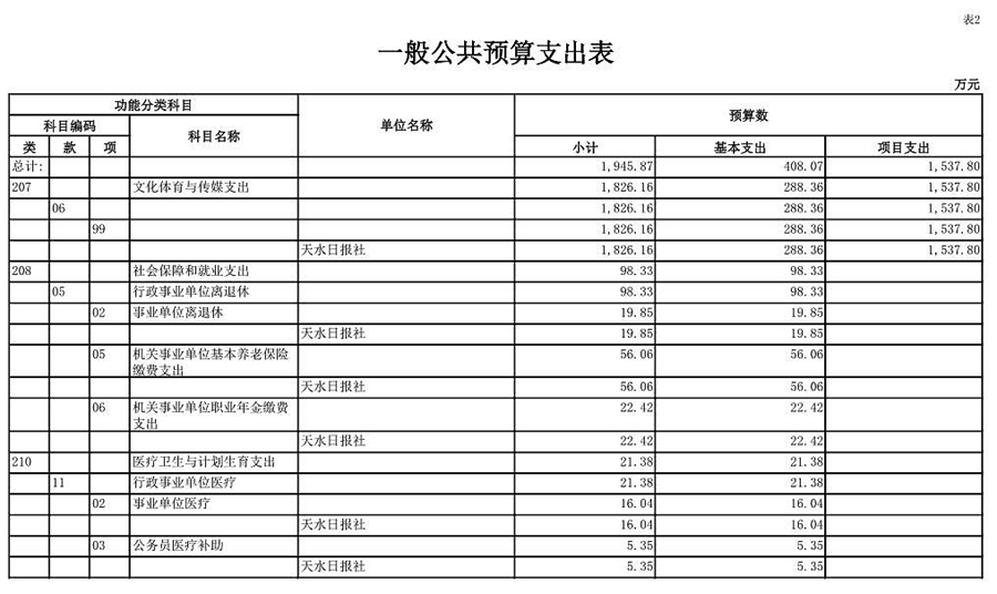 天水日报社是差额拨款事业一级预算单位,无二级单位。