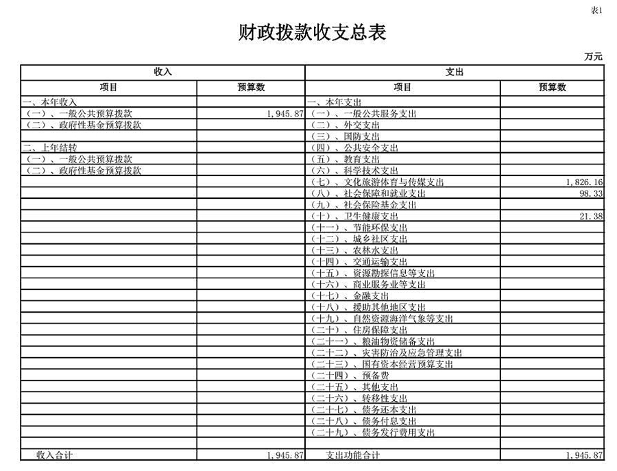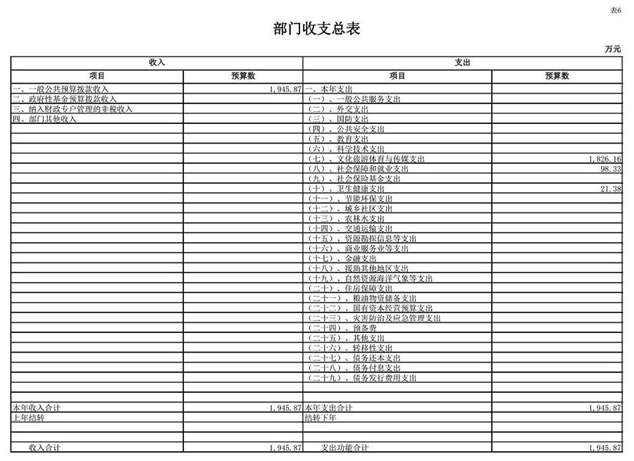 2019年财政拨款收入预算1945.87万元,比2018年增加993.47万元,增长104.3%,主要原因是天水日报社整体搬迁增加经费1000万元,其中:文化体育与传媒支出1826.16万元,比2018年增加1040.37万元,增长132.4%,主要原因是天水日报社整体搬迁增加经费1000万元;社会保障和就业支出98.33万元,比2018年减少46.44万元,下降32.1%,主要原因是退休人员工资自2018年已转入社保;医疗卫生与计划生育支出21.38万元,比2018年减少0.47万元,下降2%;上年结转0万元,比2018年无增减变化。