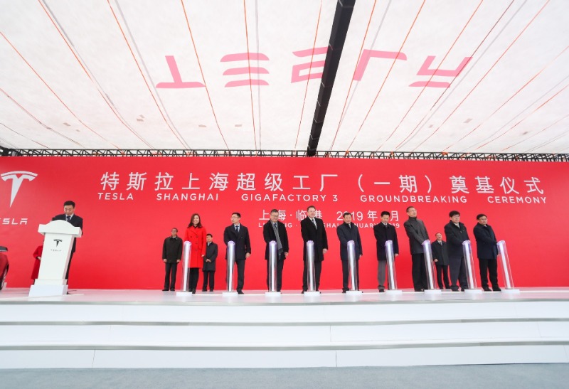 2019年1月7日,特斯拉上海超级工厂(一期)奠基仪式在上海举行。新华社记者 丁汀 摄