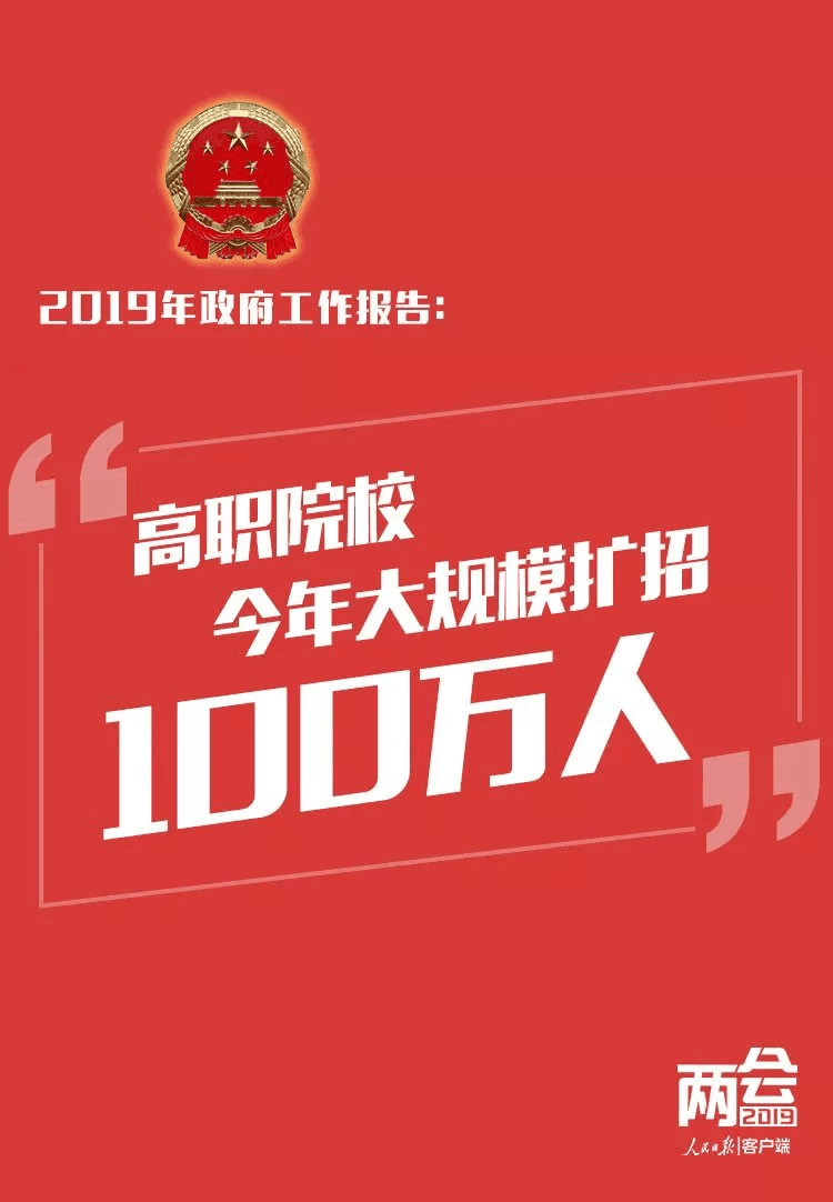 政府工作报告说,改革完善高职院校考试招生办法,鼓励更多应届高中毕业生和退役军人、下岗职工、农民工等报考,今年大规模扩招100万人。