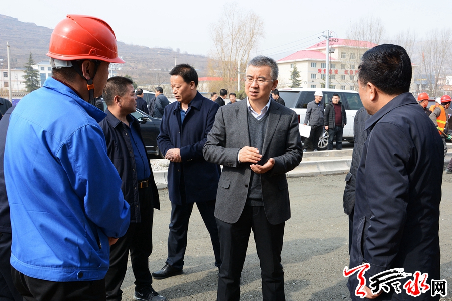 赵四辈一行先后来到麦积山大道马跑泉镇团庄村、什字坪村、甘泉镇等地,实地察看了工程进展情况,协调解决工程建设中存在的问题,并提出具体意见建议。