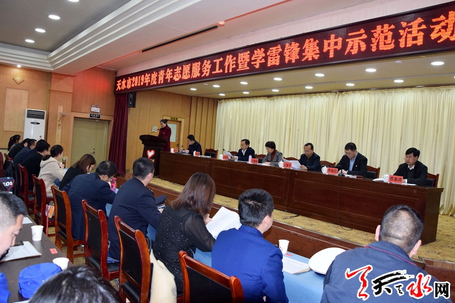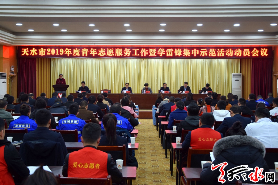 天天天水网讯【全媒体记者童强】3月5日,全市2019年度青年志愿服务工作暨学雷锋集中示范活动动员会议在天水迎宾馆召开,总结2018年全市青年志愿服务工作,安排部署今年的主要任务,部署启动“3·5"学雷锋日集中示范活动,引导动员广大青年志愿者以实际行动践行和弘扬“奉献、友爱、互助、进步"的志愿服务精神,共同推动全市青年志愿服务事业更好发展。