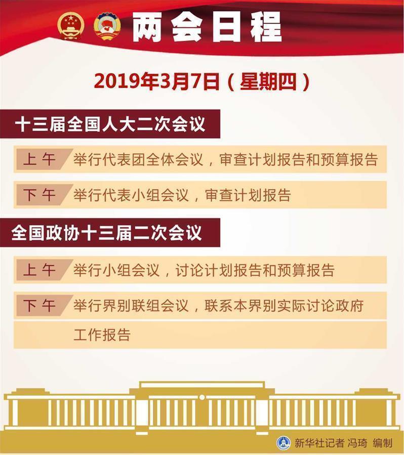 新华社北京3月6日电 十三届全国人大二次会议7日上午举行代表团全体会议,审查计划报告和预算报告;下午举行代表小组会议,审查计划报告。