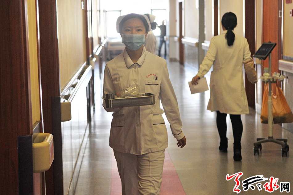 市妇幼保健院走廊里护士们忙碌的身影。