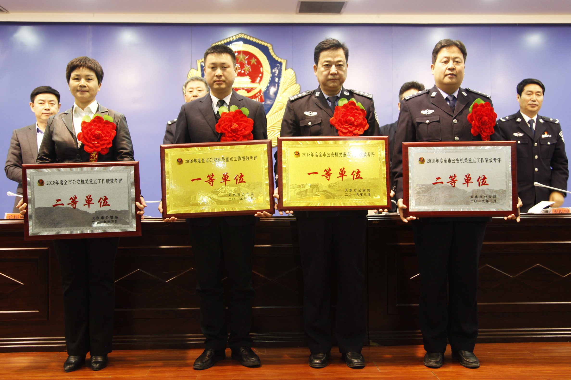 会议通报了2018年度全市公安机关重点工作绩效考评情况,通报了全市公安机关2018年度获得表彰奖励情况,表彰了重点工作绩效考评先进集体,签订了2019年目标责任书。