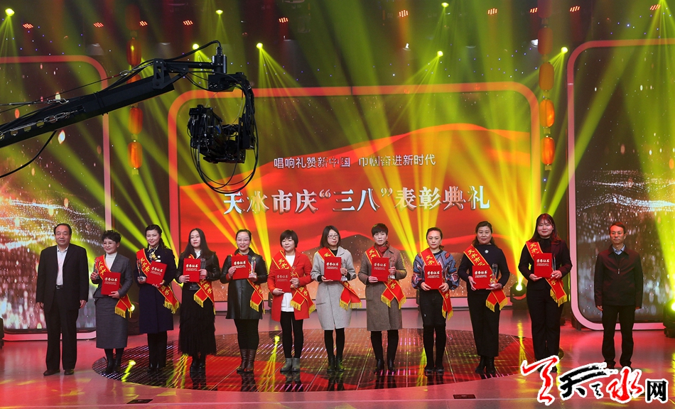 天天天水网讯(全媒体记者 李欣桐)3月7日下午,由天水市妇联主办、天水广播电视台承办的“唱响礼赞新中国 巾帼建功新时代”天水市庆祝“三八”妇女节表彰典礼在天水广播电视台演播大厅举行。市委副书记赵卫东,市人大常委会副主任安志宏,市政协副主席屈光平,市长助理李敬峰出席表彰典礼。