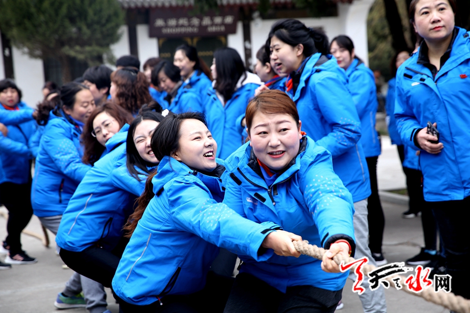 紧接着拔河比赛正式开始,拔河比赛分八个代表队。比赛中,队员们心往一处想、劲往一处使,齐心协力、不甘落后,充分体现出团队合作精神和女性积极向上的活力。场外观战的拉拉队更是为队员们呐喊助威,气氛热烈,最终秦州站代表队获得第一名。 拔河赛结束后,还进行了小球接力等活动。