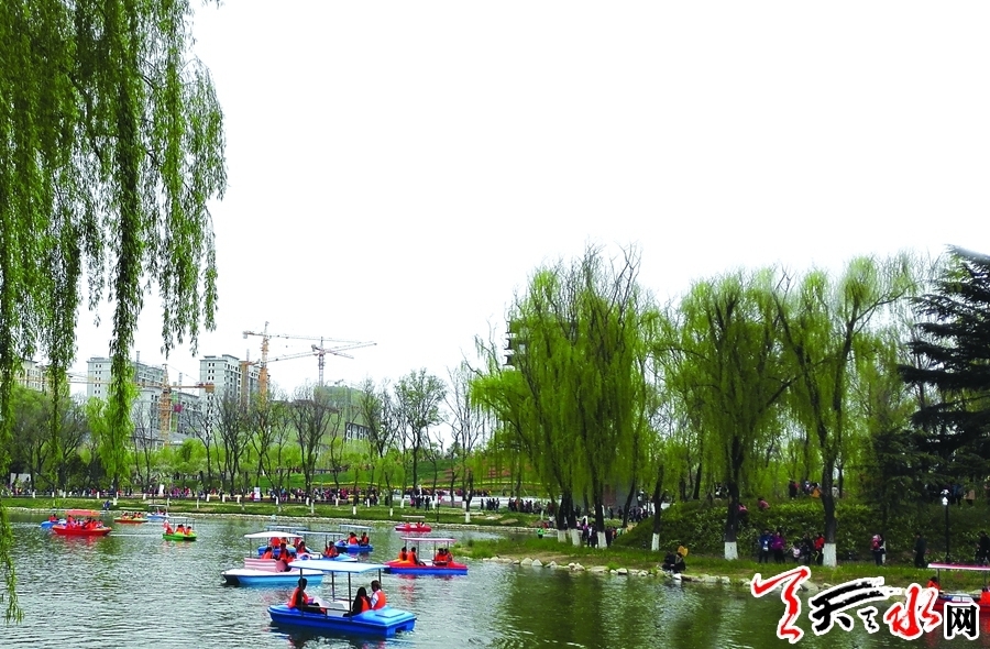 与藉河生态综合治理一期续建工程不同,马跑泉公园提升改造项目更加注重娱乐性。据梁梅介绍,麦积区马跑泉公园提升改造项目自2014年7月启动,2016年完工向市民开放,该项目占地340亩,水体面积128亩,绿化面积130亩,每天可容纳游客1.2万人,与国家5A级旅游景区麦积山风景名胜区交相辉映,功能互补,是一个生态特色浓郁、品牌特色鲜明、文化内涵深远的高档次综合休闲娱乐场所。