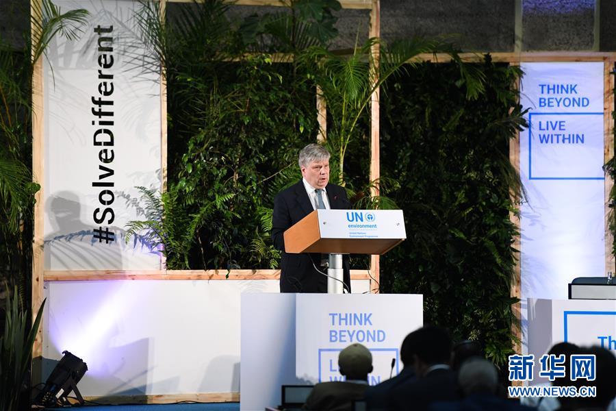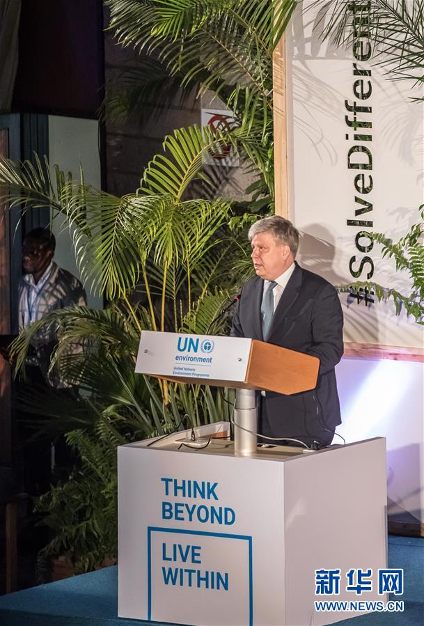 3月11日,在肯尼亚首都内罗毕,第四届大会主席、爱沙尼亚环境部部长西姆·基斯勒在开幕式上致辞。新华社记者 李琰 摄