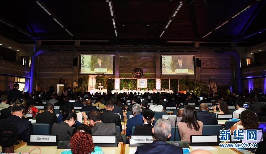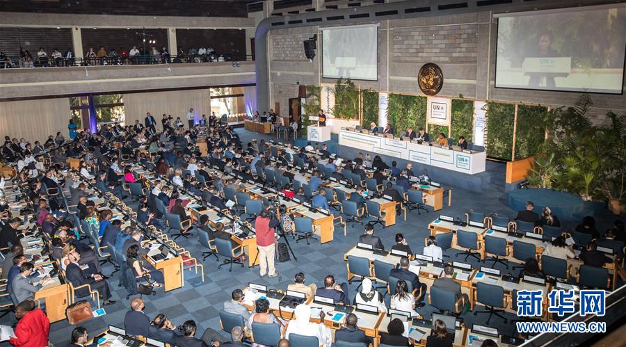 这是3月11日在肯尼亚首都内罗毕拍摄的第四届联合国环境大会开幕式现场。新华社记者 李琰 摄