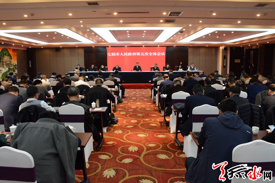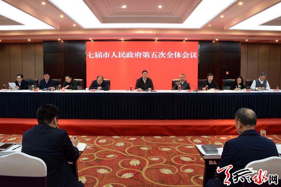 天天天水网讯【全媒体记者吴丽娜】3月12日,市委副书记、市长王军主持召开七届市政府第五次全体会议。他强调,要以习近平新时代中国特色社会主义思想为指导,按照市委七届七次全体会议安排部署,抢抓机遇,开拓创新,攻坚克难,真抓实干,确保圆满完成今年政府确定的各项目标任务。