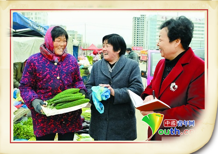 王银香(右一)在曹县蔬菜市场调研。资料图
