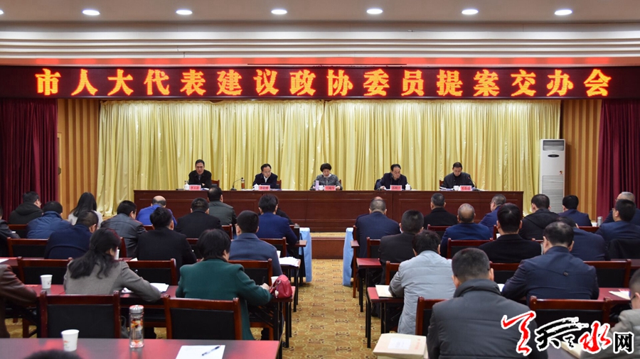 天天天水网讯(全媒体记者 赵蔓)3月12日,市人大代表建议、市政协委员提案交办会召开,会议将今年的代表建议和政协委员提案交由7个县区和44家单位办理。