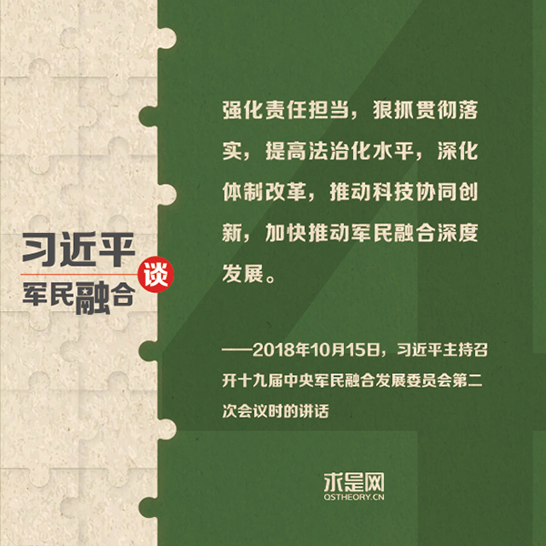 编者按: 3月12日,中共中央总书记、国家主席、中央军委主席习近平在出席解放军和武警部队代表团全体会议时强调,军政军民团结是我们的优良传统和政治优势。党的十八大以来,习近平总书记关于军政军民团结、军民融合有很多精彩论述,一起来看