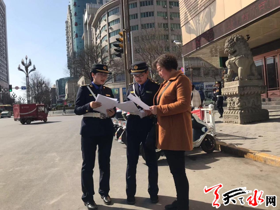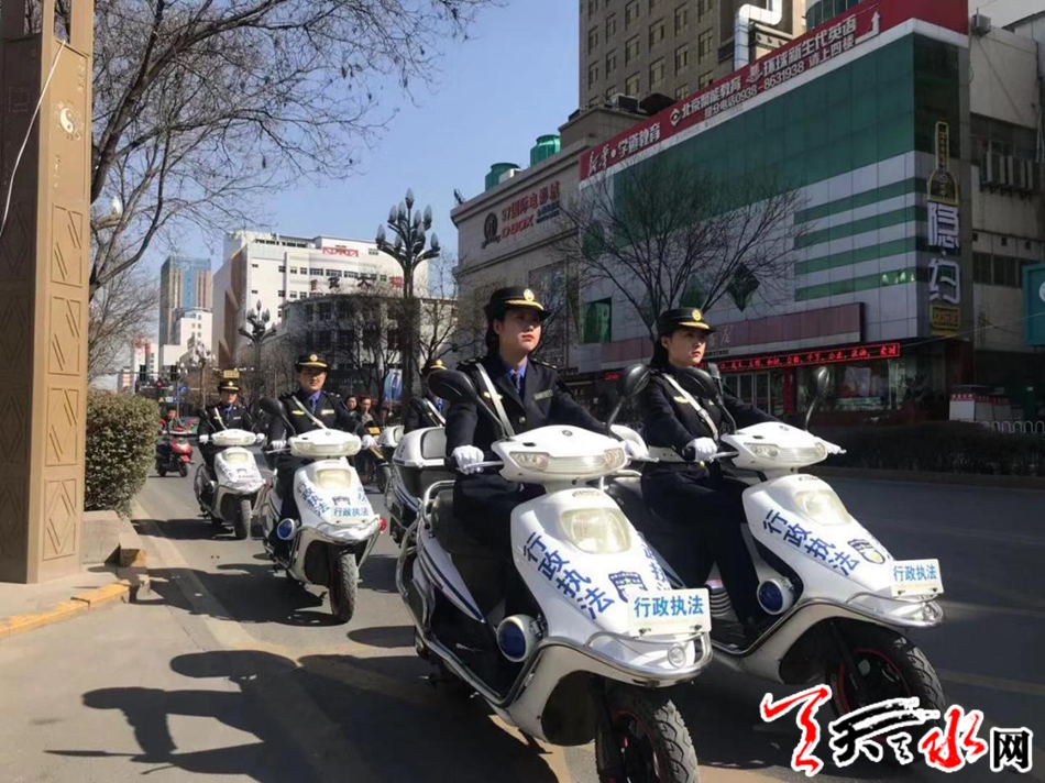 天天天水网讯 阳春三月,万物复苏,一支整齐、靓丽的女子城管队伍伴着暖阳出现在古城天水的街头。她们面容清丽、着装整齐、骑行有序、用语文明在秦州街头开展创建文明城市的宣传与执法工作。