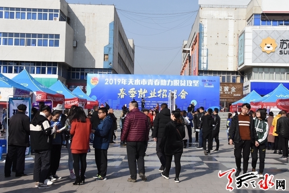 天天天水网讯【全媒体记者吴丽娜】3月16至17日,由共青团天水市委、天水市人力资源和社会保障局主办的2019年天水市青春助力脱贫攻坚春季就业招聘会在龙城广场举行。活动旨在全面落实市委市政府关于打赢脱贫攻坚战的部署,不断深化青年转移就业增收计划,切实为城乡青年实现就业提供有效服务。