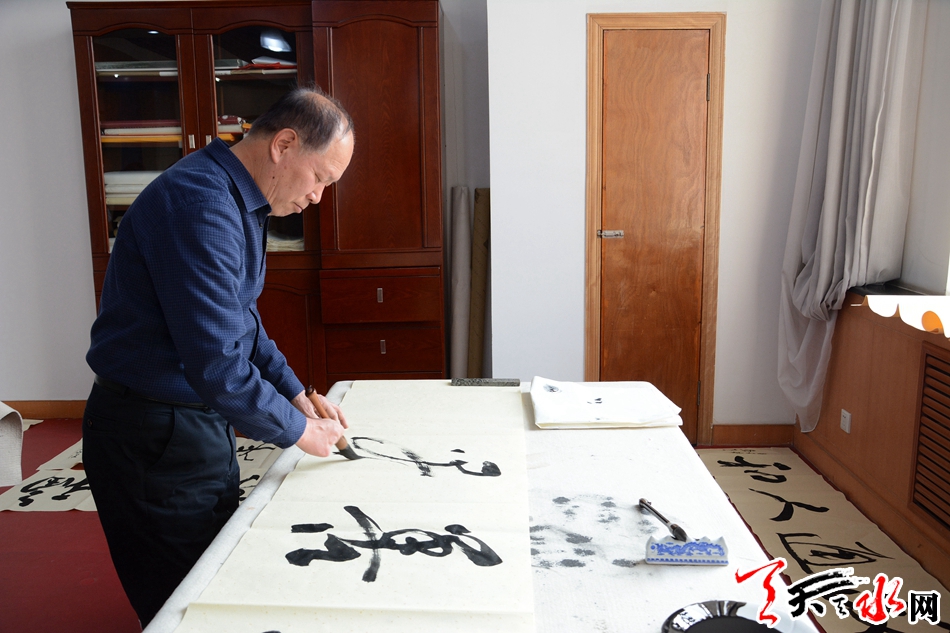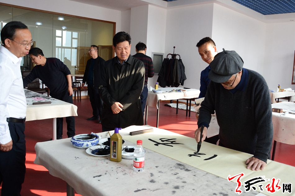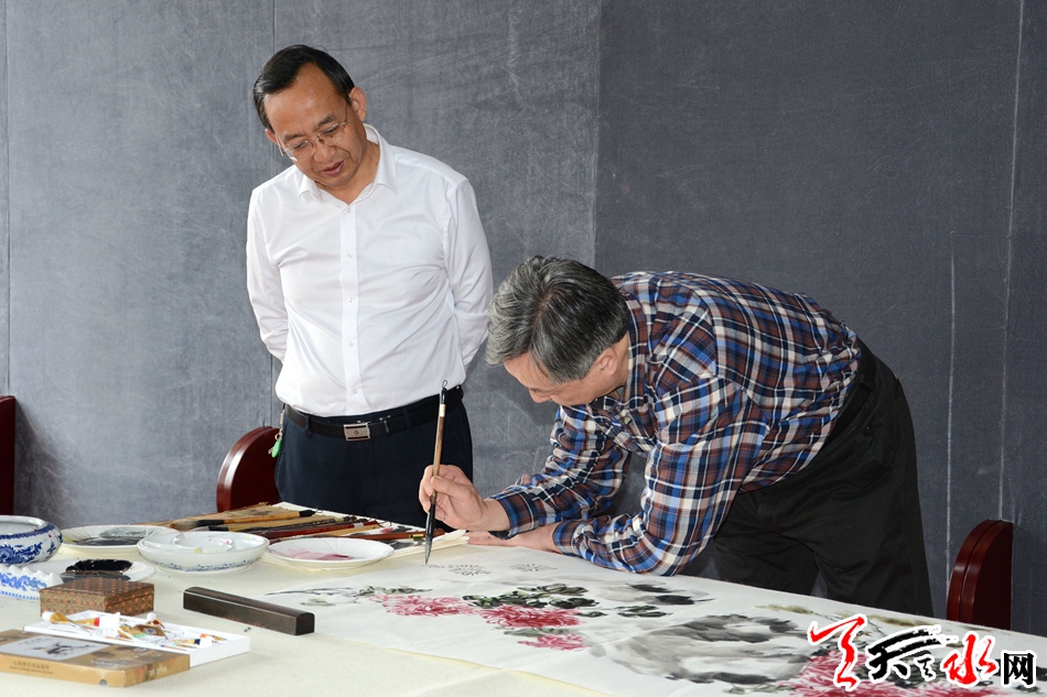 开展仪式前,部分天水书画名家在省政协展厅现场挥毫泼墨,进行了即兴创作。