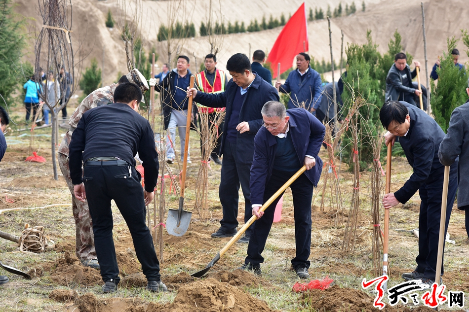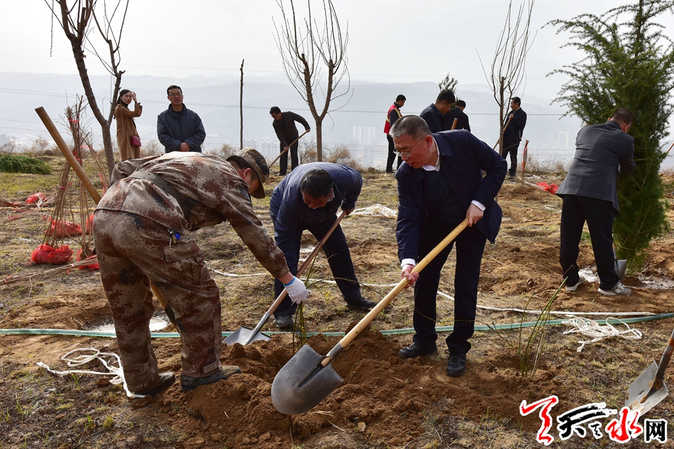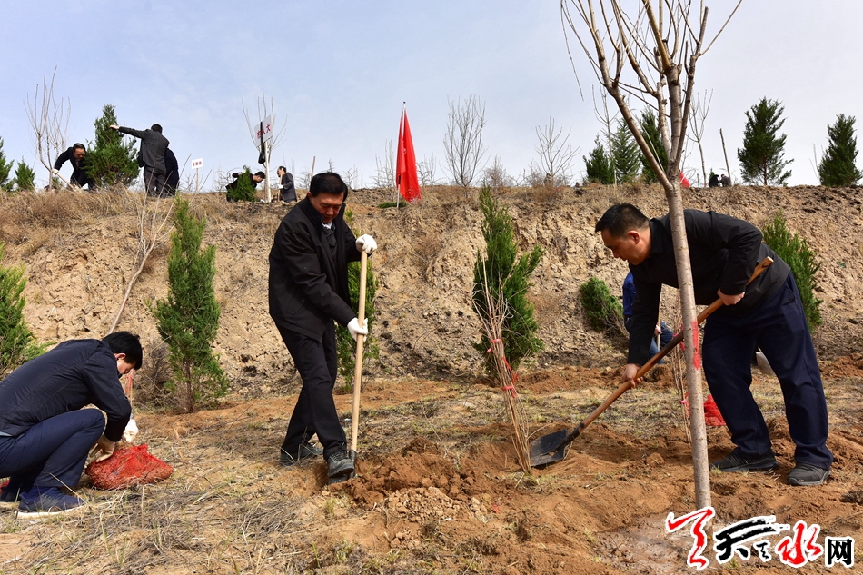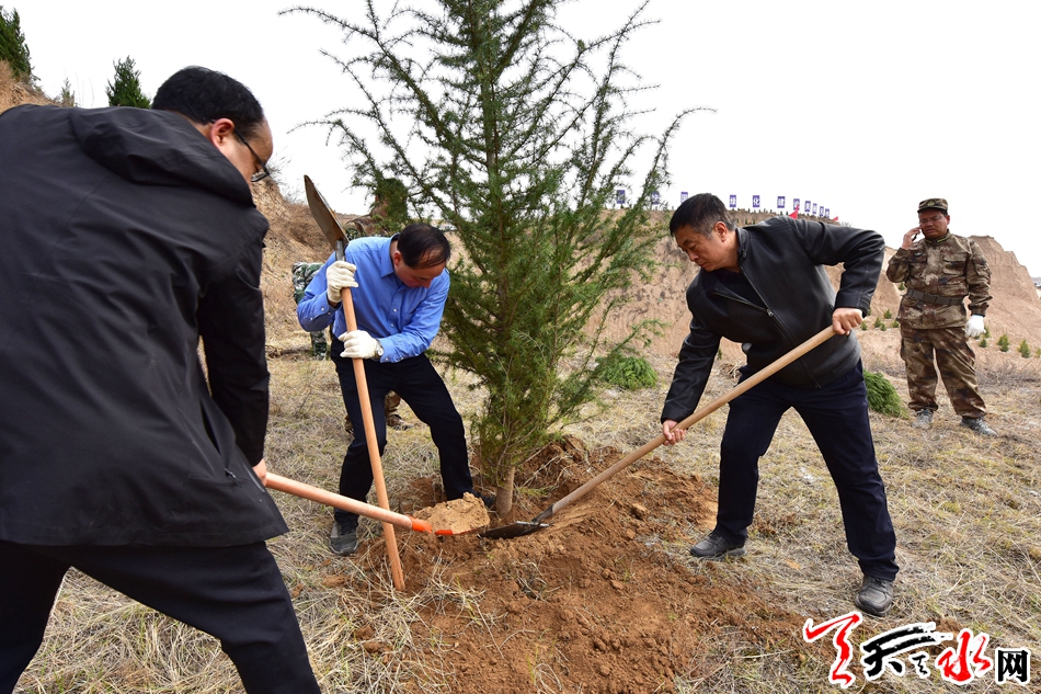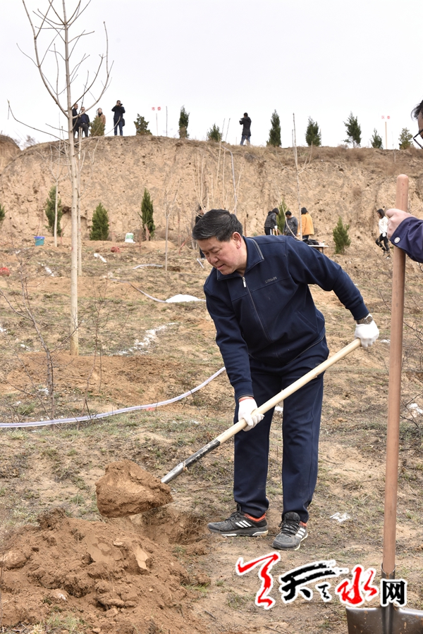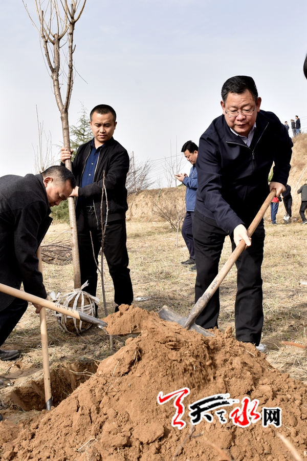天天天水网讯【全媒体记者 王晓馨 周文涛】又是一年春光好,植树造林正当时。3月22日,市委书记王锐、市人大常委会主任蒋晓强,市委副书记、市长王军,市政协主席张明泰等市四大班子领导来到秦州区玉泉镇王家磨村北山义务植树点,开展春季义务植树活动,以实际行动号召全市人民积极投身到植树造林活动中,为天水大地再添新绿。