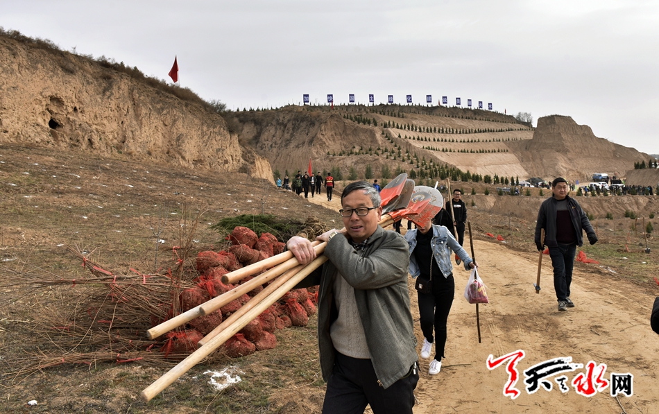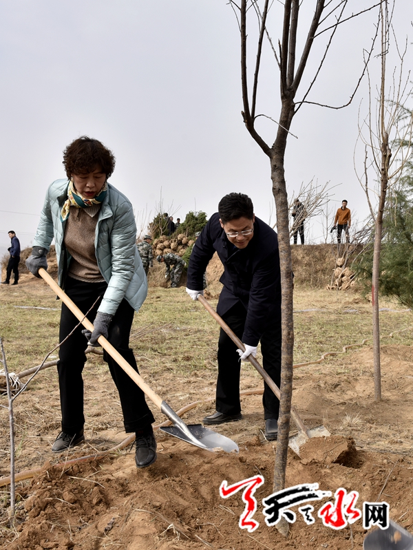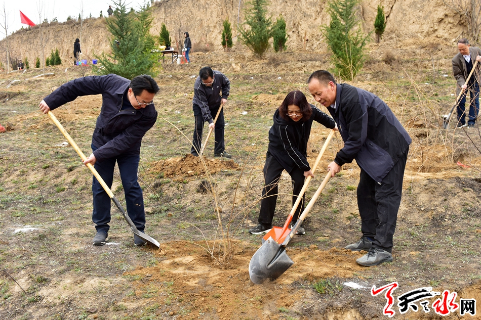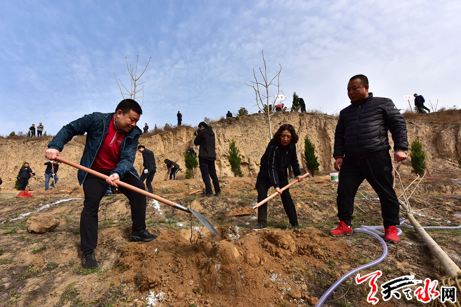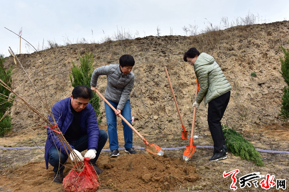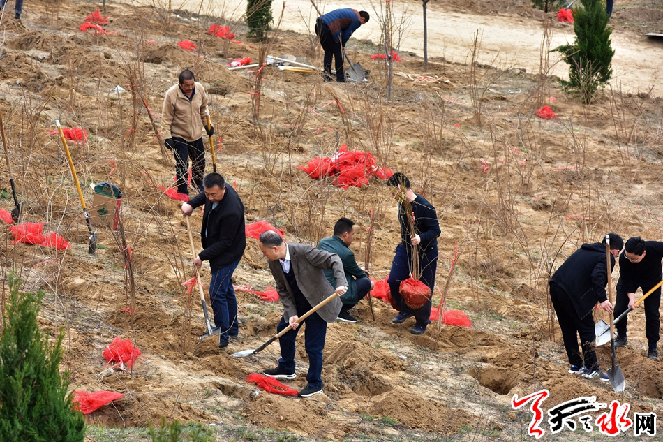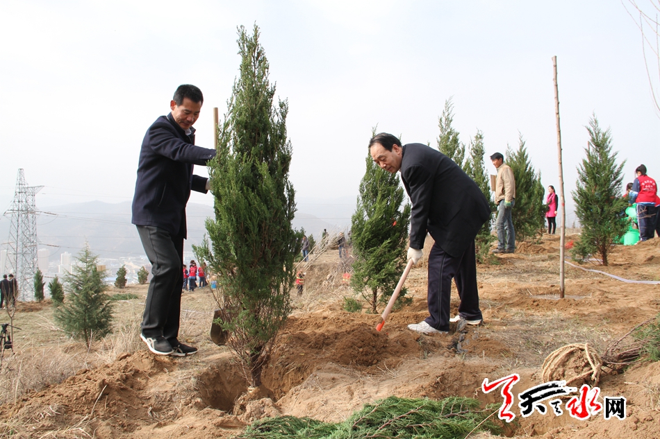 天天天水网讯【全媒体记者 王晓馨 周文涛】又是一年春光好,植树造林正当时。3月22日,市委书记王锐、市人大常委会主任蒋晓强,市委副书记、市长王军,市政协主席张明泰等市四大班子领导来到秦州区玉泉镇王家磨村北山义务植树点,开展春季义务植树活动,以实际行动号召全市人民积极投身到植树造林活动中,为天水大地再添新绿。