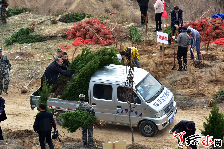 当天,来自市直和秦州区的140多个单位共计1.1万余人参加义务植树活动,共栽植连翘、侧柏等苗木3万多株。 在大家的共同努力下,一株株树苗昂然挺立、错落有致,在和煦的春风中展现着蓬勃生机。